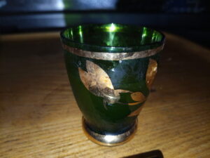 私が小学校低学年?の頃からあるチェコグラス。高さは4-5㎝のリキュールグラスです。当時の世界のガラス業界のトップはチェコだったように記憶しています。ゴーヤの甘酢漬けの漬け汁を飲んでみました。