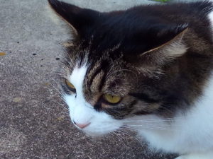 昨日、ちゃーちゃんと三毛ちゃんが食べているところに白黒猫がやって来ました。お腹を空かせているのは分かるけれど、ここはあんたの来るところではないよ、と言っているときにタイガーさんが二階から降りてきましたので、タイガーさんにその光景を見せました。全く反応がないので、そういう時もあるのかな、と思っていると、10分くらいして庭でオス同士の喧嘩声がしました。勿論、聞き覚えのあるタイガーさんの声です。
