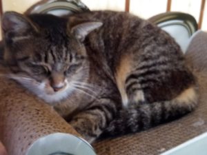 =^_^=は毎日爪を研ぎますからゴミが沢山出ます。冬になると寒い時は夜中に背中を守ってくれる猫ベッドが必要です。これまで布製で恐らく東南アジア製のものを購入しましたが、だれも使いませんでした。そんなに安くはなかったんだよ~。『でも、嫌いなものは嫌い。』段ボールは猫の大好きな素材で、今まで外れはありませんでしたから、自分の匂いが染みついて長い事使えるものが良いですね。=^_^=のソファベッドもトラ子が大のお氣に入りではありますが、品質が今一歩で買い替えが必要になりそうです。トラ子はソファの手を置くところに上半身をもたせ掛け、くつろぎます。お氣に入りだけあって使い方も慣れています。