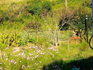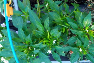 右: ミニ唐辛子が出来て来ました。キャベツとカリフラワーとネットの中で同居中です。しかも大根まで足元に播種されてしまいました。