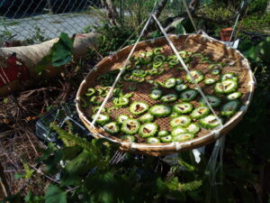 中: 晴れたらゴーヤ干し、夕方取り込むときにはかなり乾燥しています。明日も晴れるみたいです。
