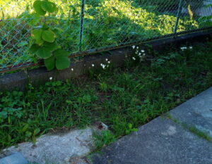 左: 玉竜が育ってきました。草にまみれています。笑