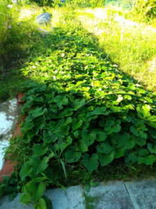 中: サツマイモの挿し穂が凄い勢いで広がっています。