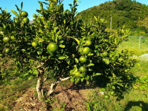上段左: 西隣さんの温州さんが大きくなってきました。金柑さんも1週間ほど前にまた枝の内部に花を着けていました。