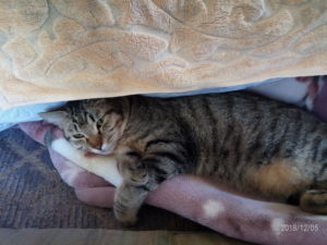 4時起きでした。四猫さんにご飯を上げようと準備をしていると、いつもの様にうめが離脱。三猫さんがジュレまで食べ終わったころうめが戻って来ました。三毛ちゃん一家が『お腹が空いて死んでしまう!』と一階へ入り込み、私に叱られました。昨日のちゃーちゃんに対する私の対応をお腹が空き過ぎて忘れてしまった?二食分を出しましたが、ペロリ!、と完食でした。うめは食べ終わるとまた外出。トラ子は誰もいない二階で静かに寛いでいます。福は私の隣で香箱を組んでいます。まだお隣の電灯もついていません。