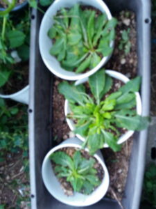 左: 物干しの日日草が枯れました。でも沢山の子供を残してくれました。これはこのままあまり大きくさせずに越冬が出来れば育てます。