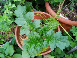 左: アカンサスの葉が段々アカンサスらしくなって来ました。小さい鉢に見えますが、尺鉢です。