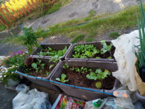 この二枚に写っているのは秋祭大根です。移植をします。カリフラワーとキャベツはナメクジでボロボロになりましたが、芯は新しい葉が無傷ですのでこのまま育てます。