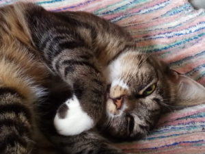4時、うめが私の腕をチョイチョイと突っつき起こしに来ました。『そろそろ4時で、私は表に行きたいからカリカリを頂戴。』タイガーさんだけがまだ寝ていて三猫さんは表に行きました。我が家の三猫さんには起き抜けでまだ食欲が湧いていないみたいです。タイガーさんは少し前に来たのでしょうか?一階の猫の出入り口が開いていましたから出入りがあったのでしょうね。1時半には閉まっていましたから。