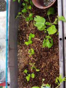 この二枚に写っているのは秋祭大根です。移植をします。カリフラワーとキャベツはナメクジでボロボロになりましたが、芯は新しい葉が無傷ですのでこのまま育てます。
