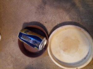 庭の縮緬紫蘇は既に種になったので、刈り取って地面に置きます。大根・キャベツ・カリフラワーのプランターをチェックしに行ったら、一匹ナメクジを見つけました。今度移す場所ではナメクジを退治しておく必要があります。ビールを買って来ましょう。ナメクジの大好物です。これをお皿に入れて置いておきます。これをしないとプランターを移動できません。ナメクジは土の中で繁殖しますので、土の分量の多い方が当然個体数も多いです。