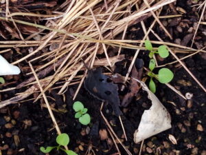 これはハコベの発芽です。あっという間に広がりますよ。野草は強いです。春になると1㎡くらいになっています。