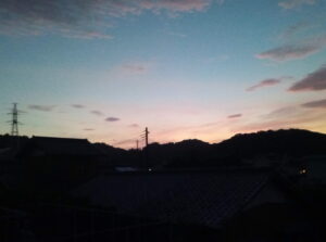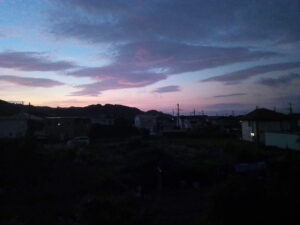 18時、ガラス窓を開けたらちゃーちゃんが待っていて、叢からニャンニャン、ニャン!曲がり君のご飯の歌が聞こえて来ました。食べている訳じゃないんでしょう?二匹にご飯を上げて戻りましたが、もうとっぷり暮れて足元覚束ない。