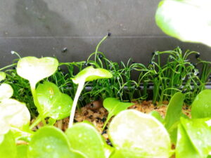 左: 昨年西隣さんから頂いたアサツキのタネの発芽です。太くて良い苗になりました。今回は我慢です。買ったら高価な野菜ですから、大切に育てます。