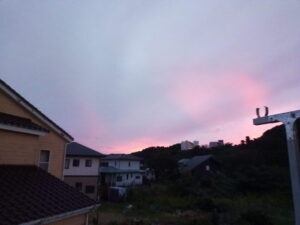でも、冬至までは2.5か月ありますが、角度でいえば45度近い差があります。南へ行かれる距離がこちらからは角度として現れるんですね。一日前の写真も北ー南の雲が現れていましたが、このところ多いですね。茨城県南部とか千葉県北西部にエネルギーが溜まっているのでしょうか。