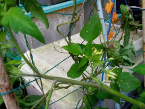 庭の支柱を少し指し直したり、左右を連結したりしました。中々できなかった二畝の草取りもしました。