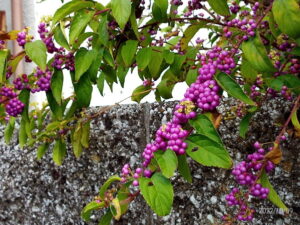 左: 紫式部の実が鮮やかになりました。本当はもっと青紫がかっています。