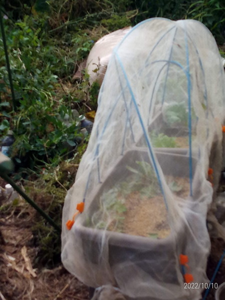 仔猫除けネットです。不織布がズタズタになったのは南風のせいではない!