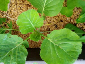 こちらは金系201号キャベツです。ナメクジにやられた葉は痛々しいですが、その後は虫害は出ていません。この時期の生命力は凄いですよね。