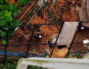食後、身体を寄せ合い、自分たちがびりびりにした不織布に包まろうとする曲がり君とクロスケ。こういうのを見ると小屋を作りたくなっちゃう。