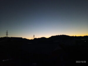 5時前、快晴ですね。海の上のお団子状の雲が肉眼で見ると可愛くて面白いですが、1.0倍だと全然面白くなくなっちゃう。肉眼は2.7倍くらいかなぁ。
