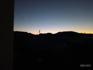 朝は5時起きです。まだ真っ暗ですね。
