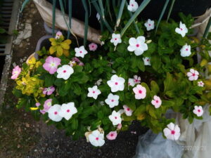 左からキンギョソウの黄色、ピンク、赤、少しだけ大きくなりました。根はすごく伸びているんですよ。