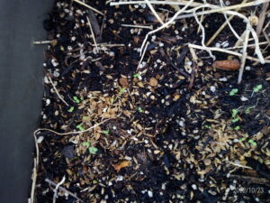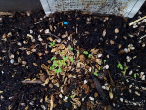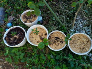 同じく発芽した金柑かなぁ。親木は西隣さんの金柑か温州さん。これも同じく8号鉢へ植え替えました。来年の春には大きなポリポットに植えて上げましょう。