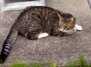 仔猫達には2時半頃に一度与えています。三毛ちゃんが強行突破で一階に入って来て下げて置いたお皿の中身を食べて行きました。あらかた無い!三毛ちゃんは食べるとサッサと退散。本能というのはスイッチの切り替えがしっかりしているもんですね。仕方がない、仔猫達にも冷蔵庫に保管していた魚肉缶の中身を与えました。=^_^=の活動時間帯だから白黒も来て仔猫四匹を脅していました。仔猫達も応戦している唸り声が聞こえました。我が家の猫たちの耳が緊張していました。それを聞いてタイガーさんが『俺の縄張りだ!』、とばかりに出て行きました。こういう時のタイガーさんは頼もしい。カリカリやジュレを上げるのもこういうタイガーさんなら嫌じゃない。笑笑