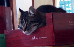 5時起きでした。12時前に表に行く仔達に扉を開けて、1時間くらいで窓を閉めた覚えがあります。3時頃にうめがご飯を欲しい、と言って来ました。トラ子も軽く食べて寝床に戻って来ました。三猫に食事を用意して、一階へ降りるとすでに三毛ちゃんそっくりの曲がり君の鳴き方が聞こえて来ました。雨の中でも元気に鳴いています。雨除けを作って食事を与えました。4匹確り食べています。今朝はいつも遅れ気味のキジちゃんも積極的に食べていました。