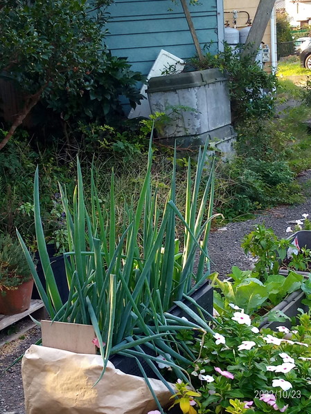 庭を造り変えているので、葱は全部まとめてプランターに植えました。プランターだと土寄せも周りを囲ってもみ殻などで覆っていけばある程度は白い部分を長く出来そうです。成長の具合も良く、後はどうやって太らすか、というのがこれからの課題です。