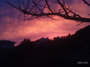 17時丁度位でこんな夕焼けが全天に広がりました。右は物干しから撮りました。