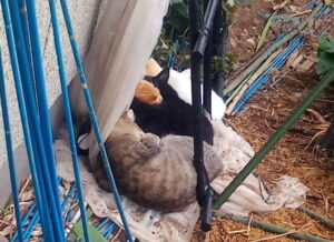 今日はさすがの猫たちも寒いらしいです。食べるか、寝るか、の二択を迫られる日のようです。福がpcに向かう私の膝を利用することを覚えてしまいました。雨は上がりましたが、冷たい氣温では外猫仔猫さん達も猫団子を作っています。この場所は家の南側でこの時期は雨が降っても少々の雨なら濡れないのです。ここにもみ殻の大袋を置いてズタボロにされた不織布を掛けて農ビをパイプ枠に掛けてみました。もう少ししたらもみ殻の袋に切れ目を入れてもみ殻に潜れるようにしてあげよう。