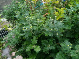 菊のつぼみが伸びて膨らんで、微かに色が見えて来ました。後5-6日で11月ですもんね。