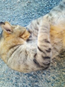 先日おおたやさんで買った鰹の冊の一番安い物をサッと蒸して冷凍しておいたものを自然解凍して小さく刻んで、外猫さんのカリカリに混ぜました。内猫さん達は付いた草の実をお手入れする時に毛も食べてしまうので、今朝は福もトラ子も吐き戻しをしてしまいました。だから、食事代わりにカチュオを一切れずつ与えました。