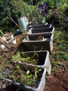 15時になったらすっかり陰ってしまう我が家の庭です。自分の家とお隣の建物の陰になってしまうのですよ。でも、お昼ごろまでは6時間くらい陽が当たって呉れていますからねぇ。日陰の部分はEMの光合成細菌の力を借りましょう。