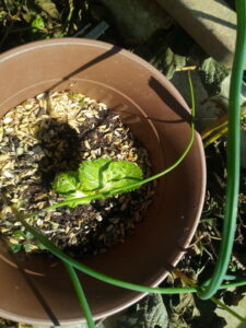 右: 一月前に買った白菜の芯から発芽です。