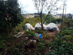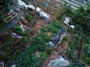 玉ねぎ苗のプランターはこうなりました。たっぷり水をやった筈が結構乾いていました。多分仔猫達がトランポリン代わりに遊んだのでしょう。ところどころ抜けている苗がありました。左のプランター2つは不織布とネットの二重掛け、中央と右の合計6つは小さい不織布を中に敷いて、弾ポールの上からネットを掛けました。寒波が来るようになったら、小さい不織布+不織布・ネットの三重掛けにしよう、と思います。