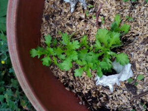 中: プランターの中でお尻を向けているのはキジちゃん。