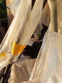玉ねぎ苗のプランターはこうなりました。たっぷり水をやった筈が結構乾いていました。多分仔猫達がトランポリン代わりに遊んだのでしょう。ところどころ抜けている苗がありました。左のプランター2つは不織布とネットの二重掛け、中央と右の合計6つは小さい不織布を中に敷いて、弾ポールの上からネットを掛けました。寒波が来るようになったら、小さい不織布+不織布・ネットの三重掛けにしよう、と思います。