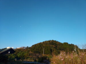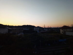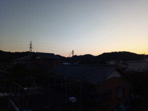 今も月は西の山の上に浮かんでいます。東の空は山の端の空がほんのり薄紫色になっていました。