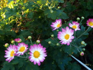 左: 今朝も覆輪の小菊が綺麗です。