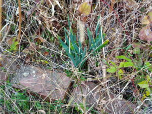 中&右: 去年植えた水仙の場所5か所覚えていますか?もう発芽していますよ。コスモスを刈る時、注意して下さいね。