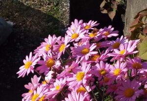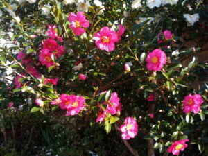 玄関前に陽が当たるのは今の季節だと11時頃です。それまでは我が家の日陰になっています。陽があたり暖かくなってくると辺り一面密を求める昆虫の羽音が響き、わずか1㎡一寸の面積なのに賑やかな音楽を聴いているような氣分になります。