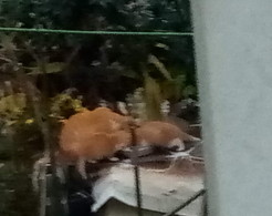 中: ちゃーちゃん親子にはっちゃんがあいさつ。仲は悪くないですよ。