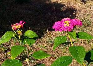 同じ時に撮った写真です。右はIさんの庭の隅にあるランタナ。この花を見るとときわ台駅の線路沿いにあった大きなランタナを想い出します。幅2x長さ3m以上に育ったランタナは一日中日の当たる環境を本当にエンジョイしていました。