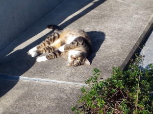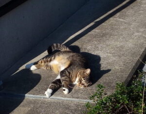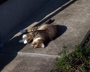 うめ5態。ゴロン、ゴロン!をして見せているところ。