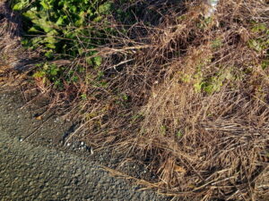 右: 美化ステーションの帰り道雀が群がって何かをついばんでいました。ヒシバの種だったようです。庭に映えると始末が悪いと思ってしまいますが、雀たちには大切なご飯。
