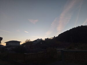 雨戸を開けた時に頬に柔らかい風があたりました。南風です。深夜まで北風は吹きません。