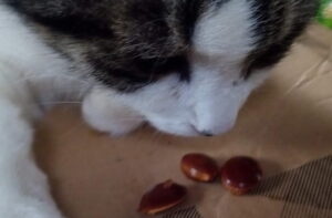 『オカアサン、これなんだ?僕も食べれるの?胡桃の仲間じゃないの?』